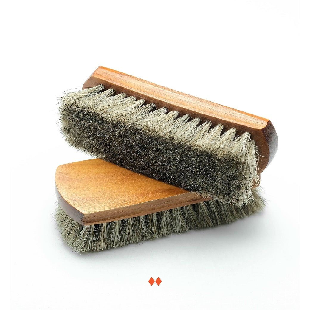Shoe Brush (bàn chải): Được làm từ gỗ và lông đuôi ngựa với độ mềm trung bình, phù hợp cho cả việc vệ sinh và đánh bóng giày.