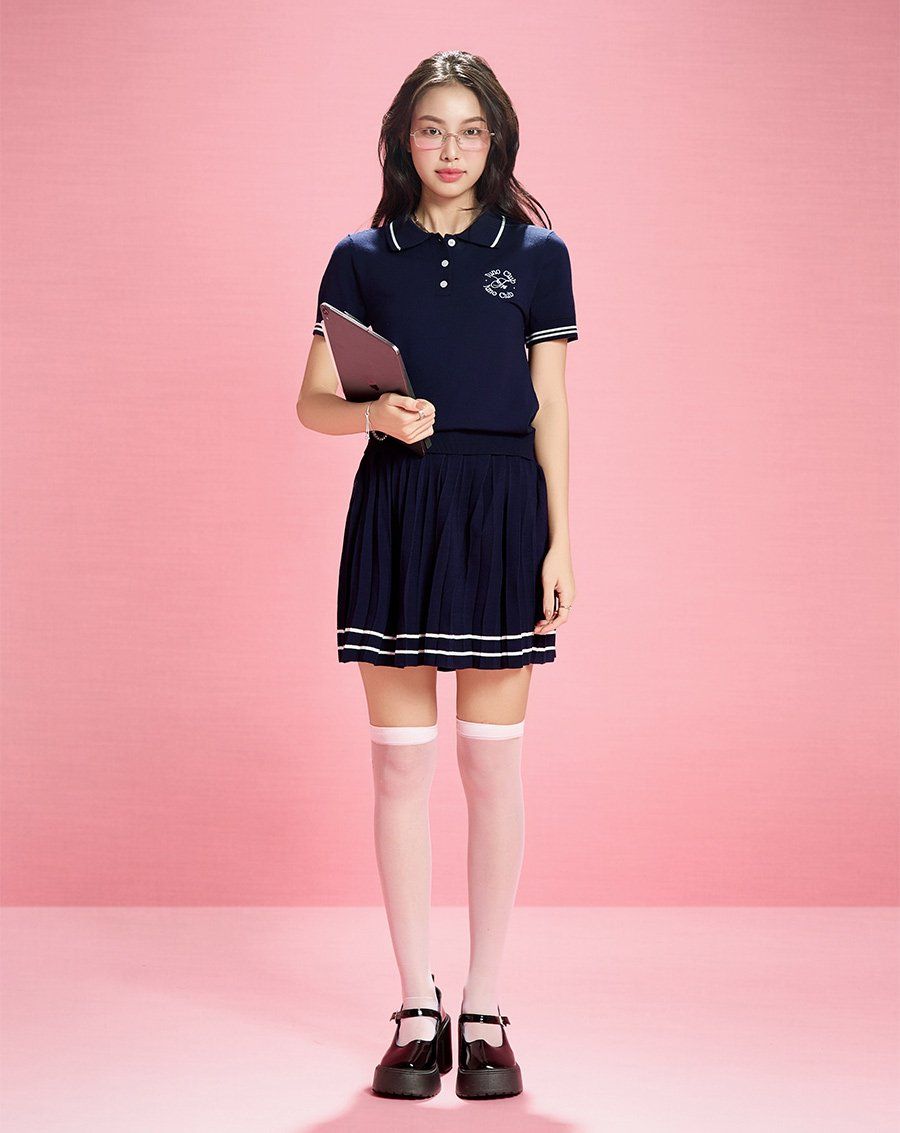 - Áo dệt kim cổ polo thêu chữ trẻ trung, năng động