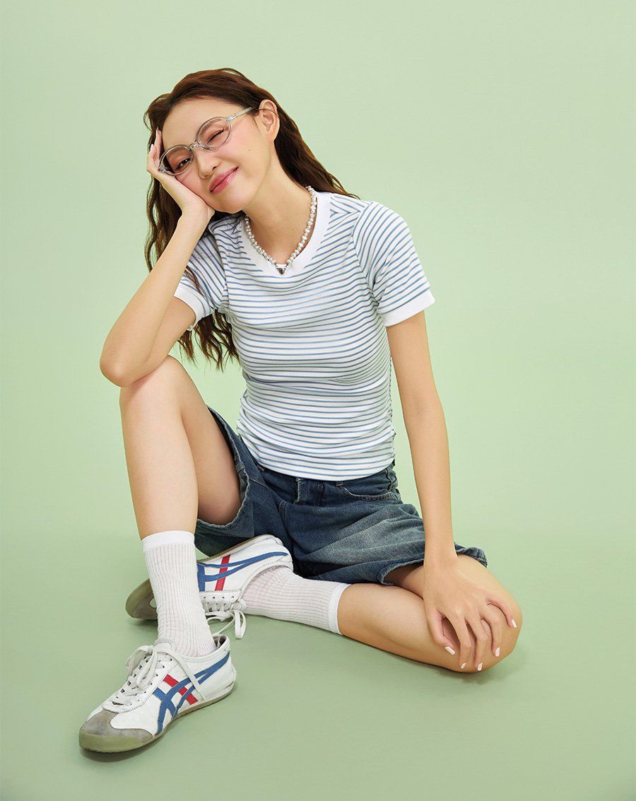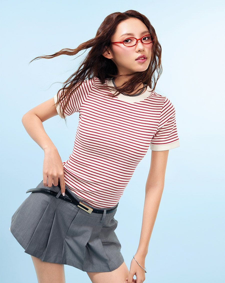 - Áo thun ôm cổ tròn sọc ngang trẻ trung và nổi bật