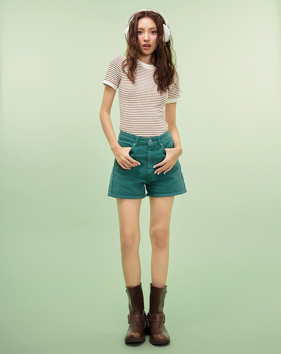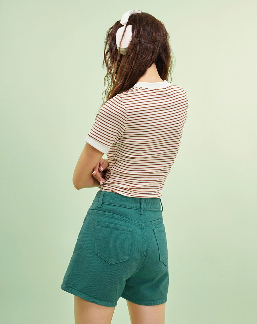 Áo thun ôm cổ tròn sọc ngang