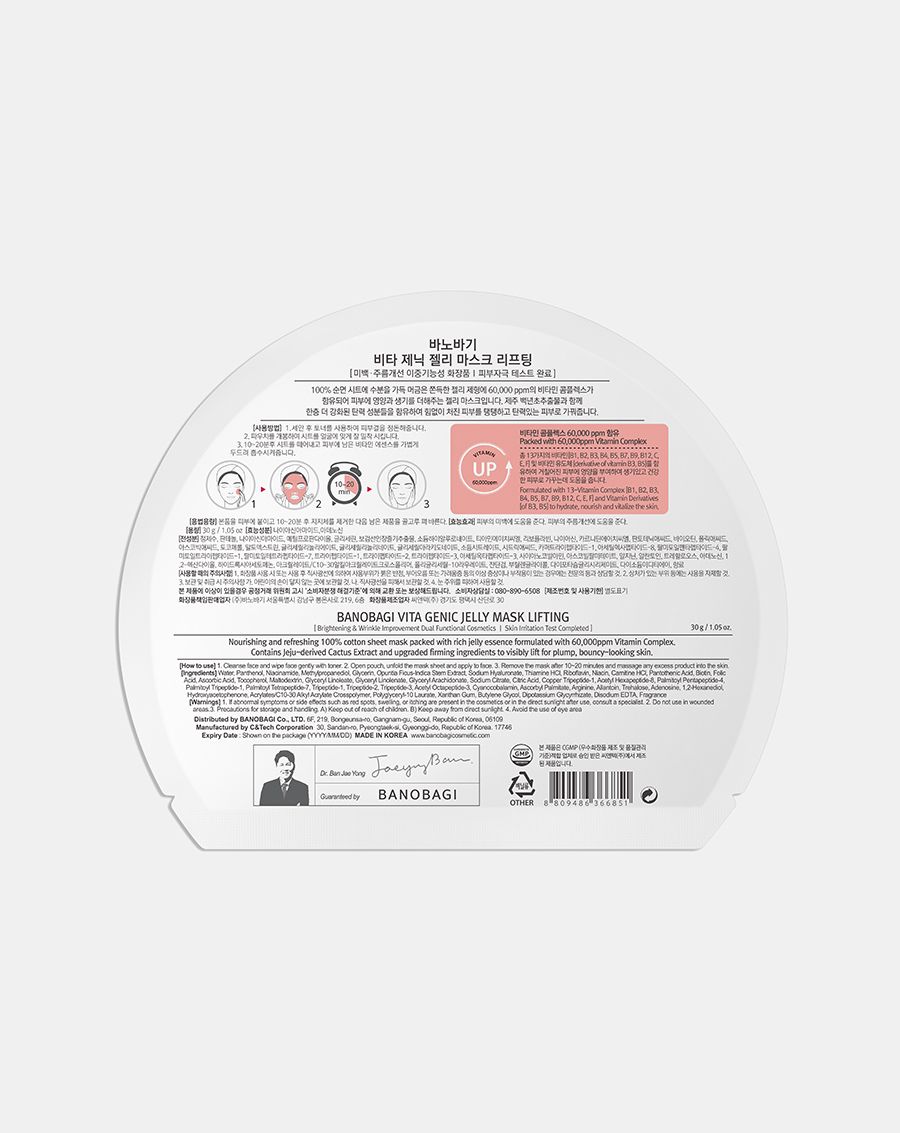 Mặt Nạ Banobagi Premium Vita Genic Jelly Mask Lifting Cấp Ẩm, Nâng Cơ 30g phiên bản nâng cấp với hàm lượng dưỡng chất lên tới 60.000ppm, chứa đến 13 loại vitamin dạng đậm đặc, là nguồn cung cấp vitamin và dưỡng chất bổ ích cho làn da. Sản phẩm được bổ sung Vitamin A với thành phần là chiết xuất từ cây xương rồng trên đảo Jeju giúp nâng cơ và săn chắc da, giúp da luôn trong trạng thái đàn hồi tốt, không bị lão hóa và chảy xệ.