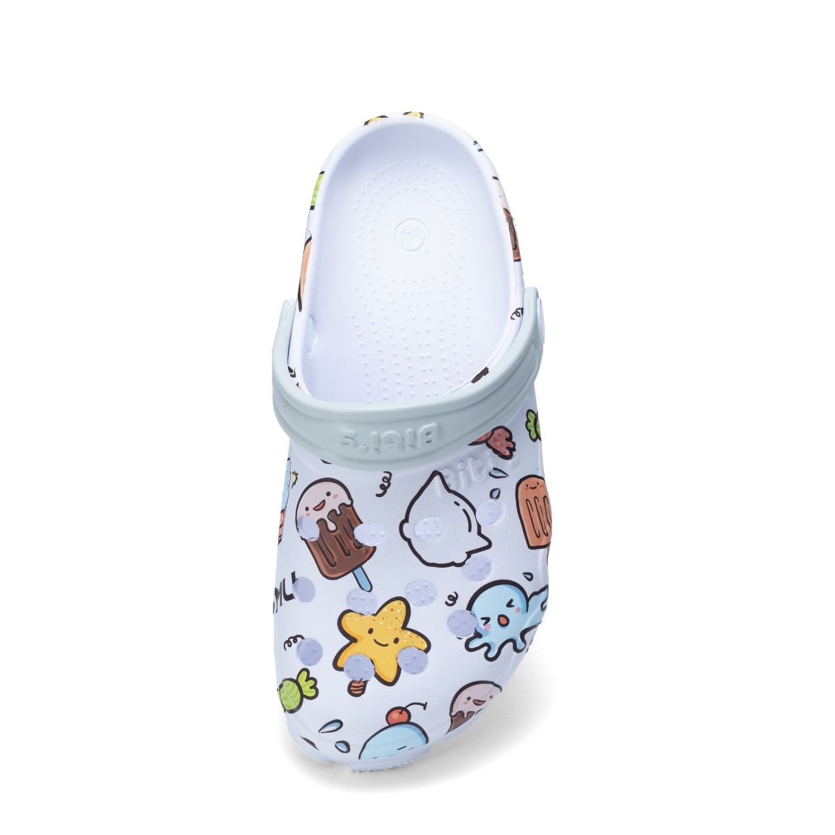 Với màu trắng tinh khôi làm chủ đạo, dép trẻ em BEB005501 màu trắng không chỉ mang lại vẻ ngoài sạch sẽ, hiện đại mà còn nổi bật nhờ các họa tiết kẹo ngọt, kem lạnh, sinh vật biển được in sắc nét, sống động. Đây là mẫu dép lý tưởng cho các bé năng động và yêu thích những thiết kế đáng yêu, vui tươi.