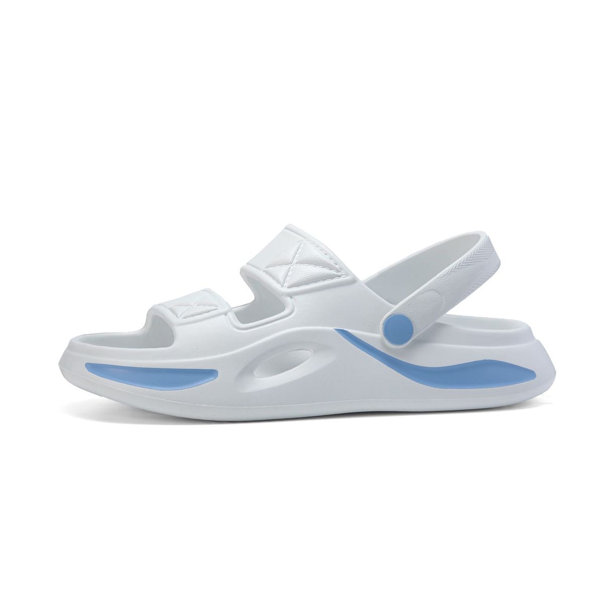 Phần quai ngang kép giúp ôm chân chắc chắn, đồng thời dễ dàng điều chỉnh kích cỡ nhờ khóa dán tiện dụng. Đặc biệt, quai hậu có thể tháo mở linh hoạt, cho phép biến hóa giữa kiểu dép và sandal tùy nhu cầu sử dụng.