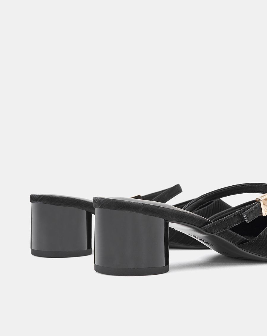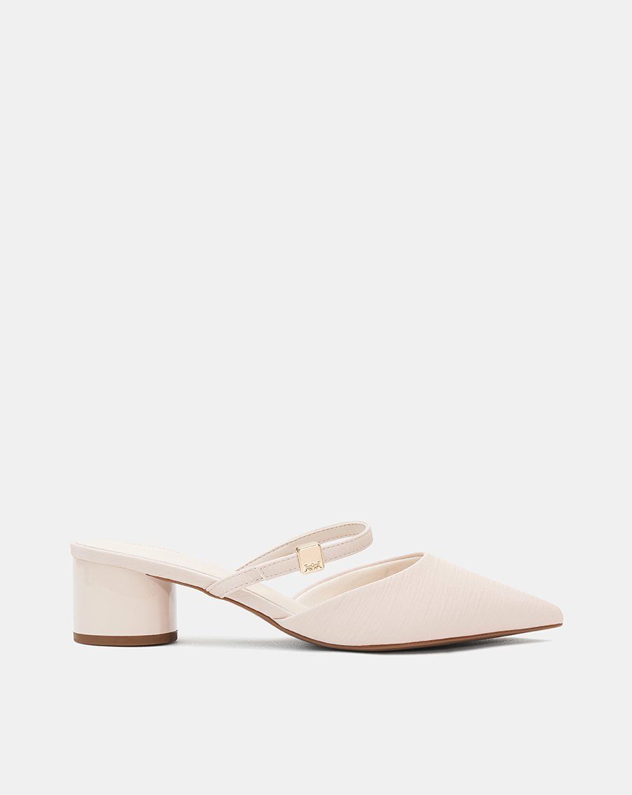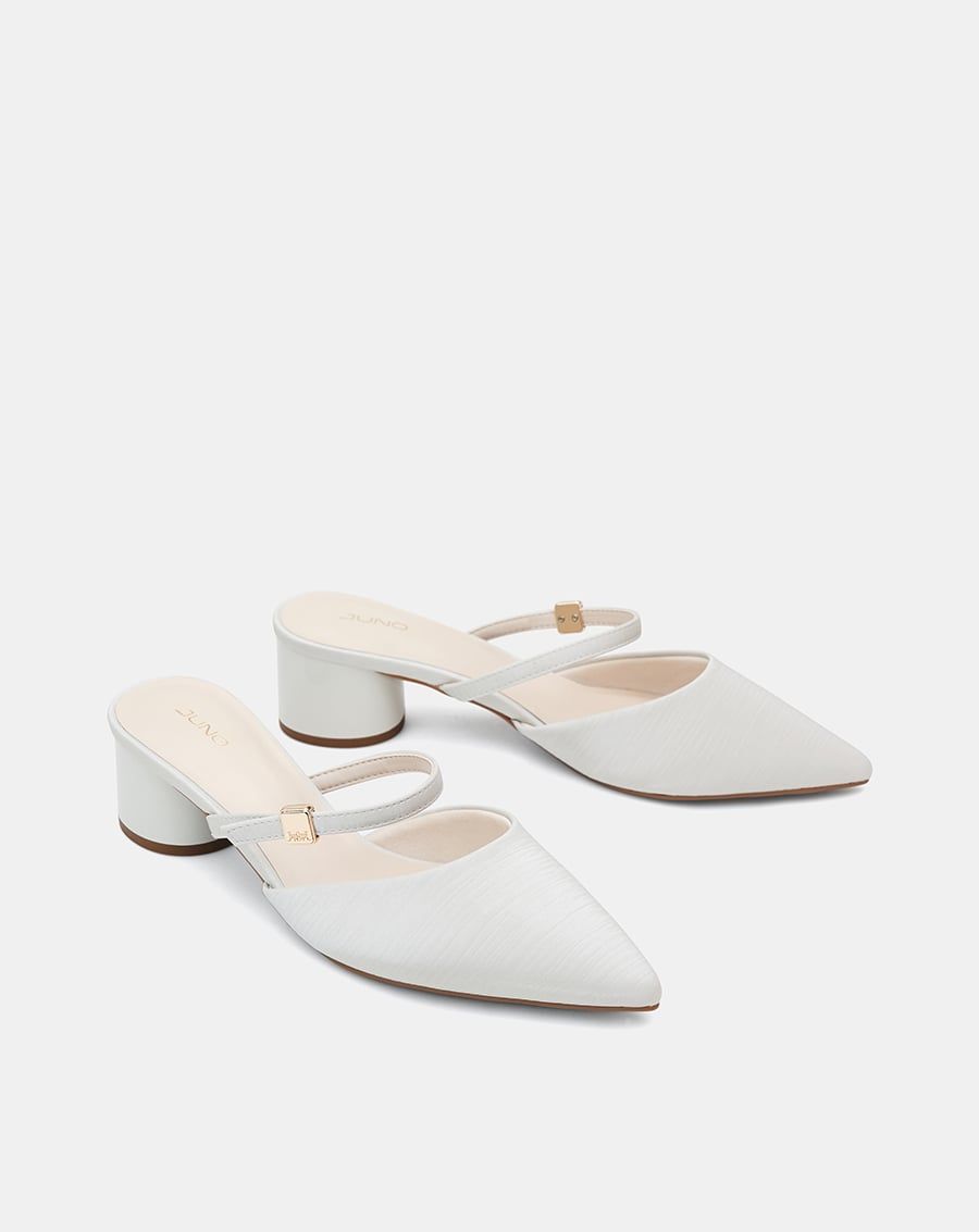 Giày Cao Gót Sục Gót Trụ Thấp Phối Quai Ngang