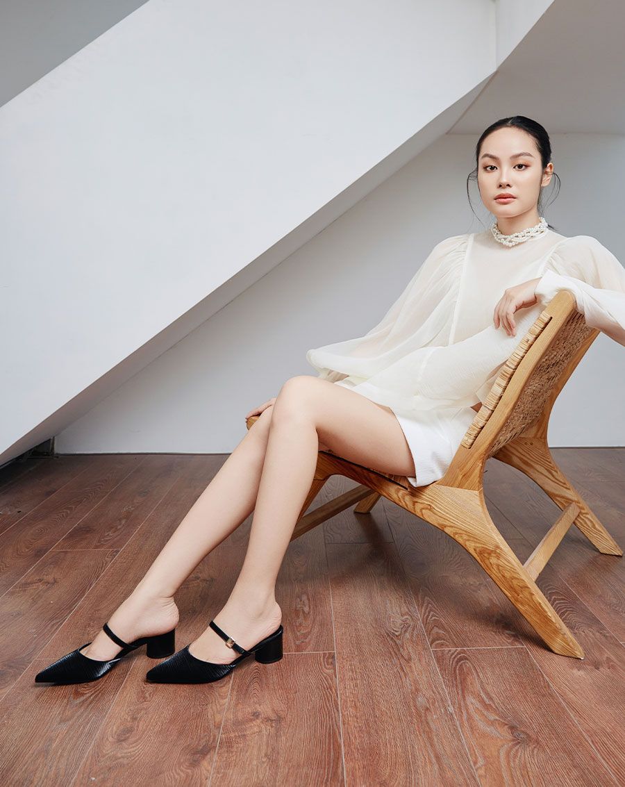 Giày Cao Gót Sục Gót Trụ Thấp Phối Quai Ngang hiện đại, thanh lịch