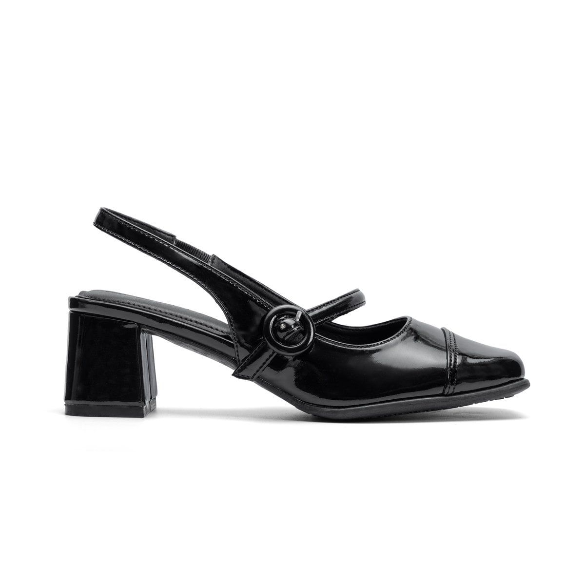 Chất liệu da tổng hợp bóng mờ cao cấp, dễ vệ sinh, không lo thấm nước nhẹ, tạo độ sáng vừa phải giúp nâng tầm trang phục của bạn. Quai hậu mềm mại với khóa tròn bản nhỏ ôm chân vừa vặn, không gây đau gót hay xô lệch khi di chuyển.