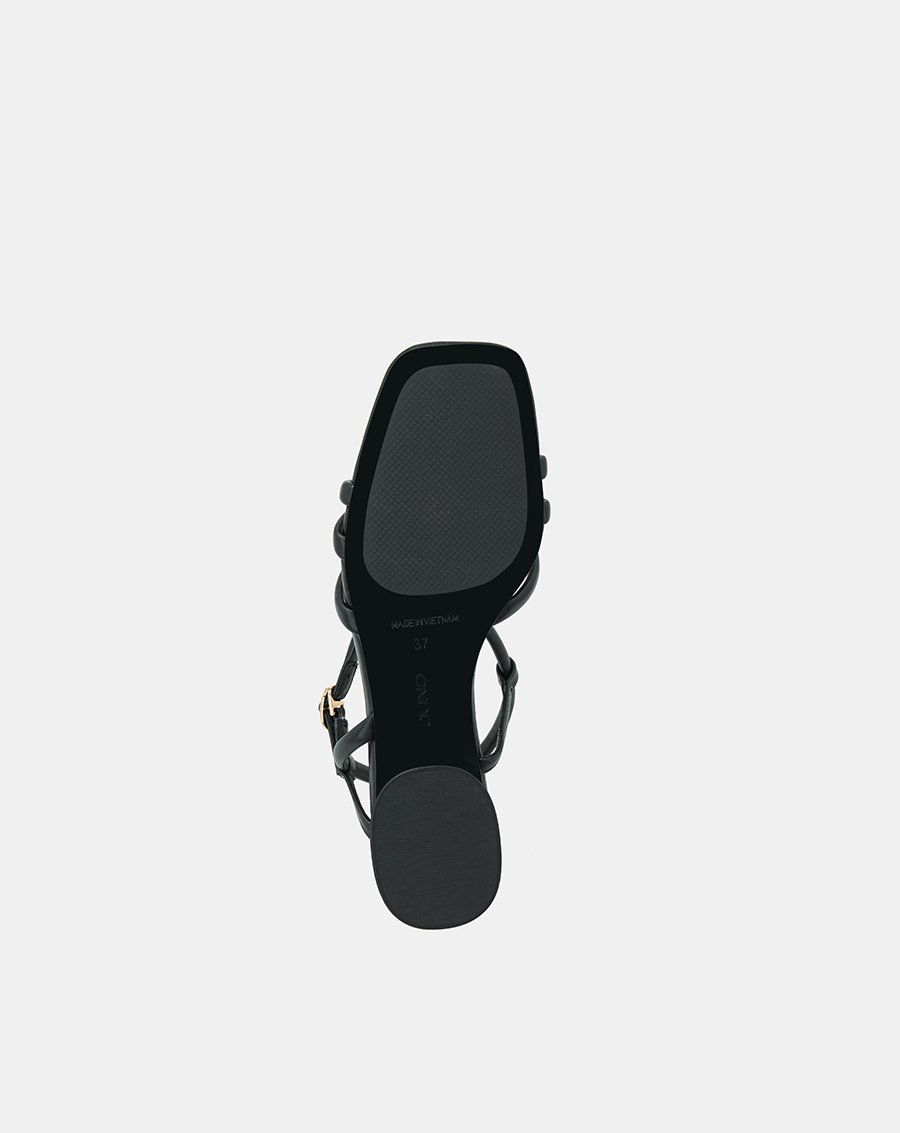 Giày mũi vuông, phối quai mảnh đan chéo tạo nên sự uyển chuyển trong bước đi