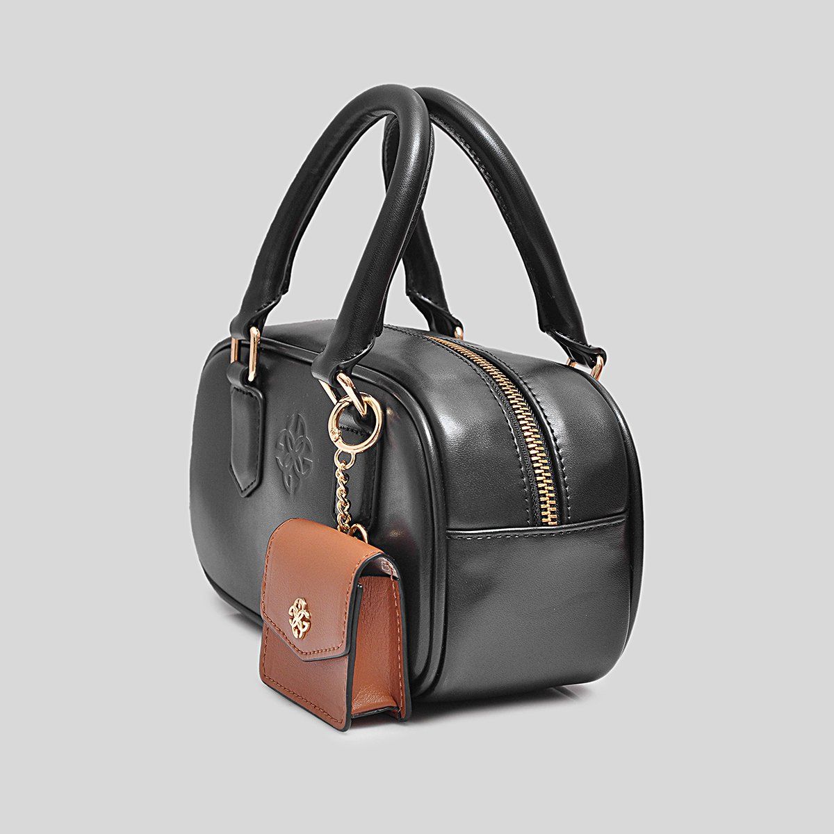 Điểm cộng nổi bật là ví mini đi kèm có thể tháo rời, giúp bạn linh hoạt mang theo các vật nhỏ như thẻ, tiền lẻ hoặc tai nghe. Phần tay cầm tròn dày dặn cho cảm giác chắc tay, phối cùng các chi tiết kim loại ánh vàng sang trọng, tạo nên tổng thể hài hoà, thanh lịch.
