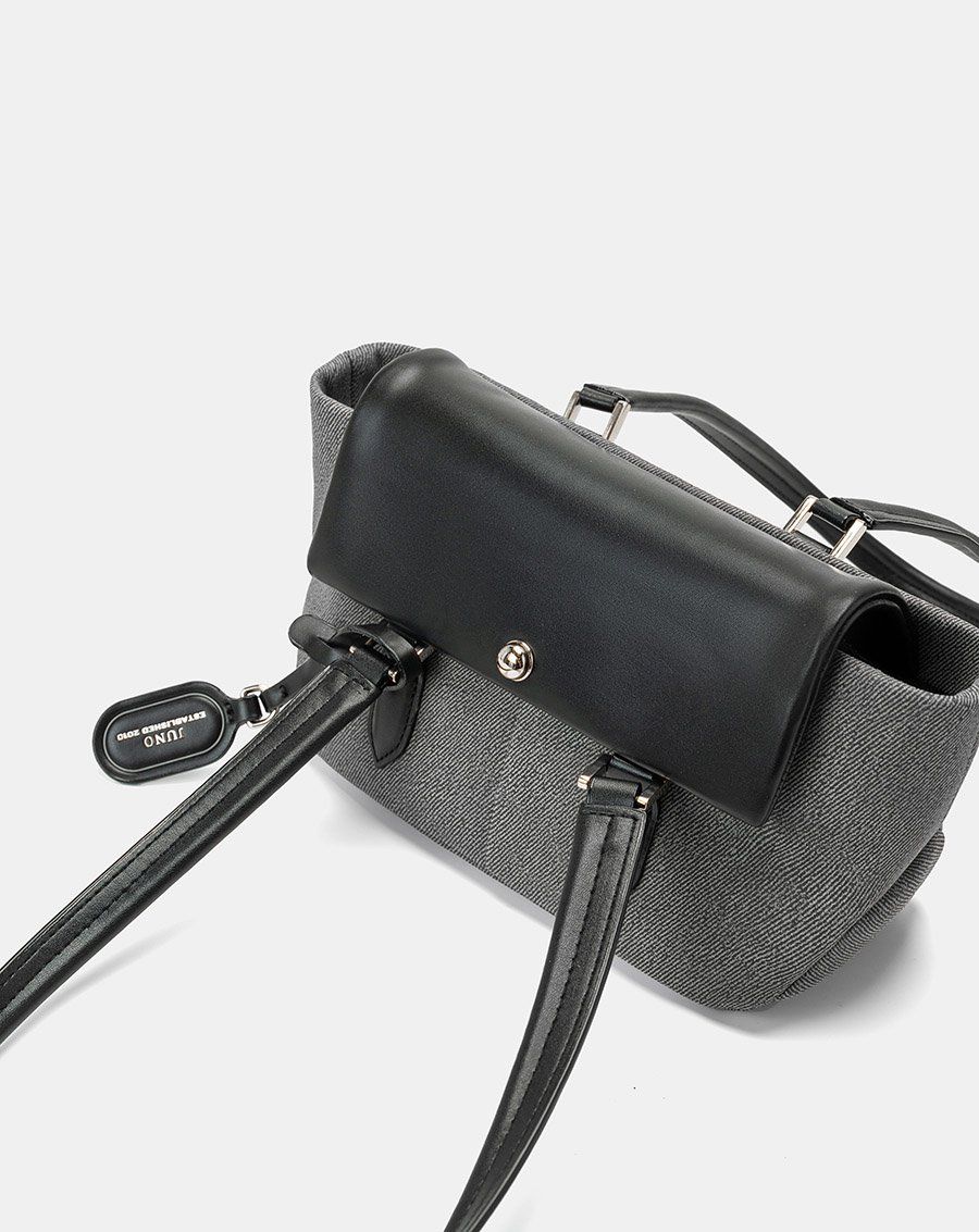 Túi Xách Nhỏ Đeo Vai Phối Nắp Trang Trí Charm Juno