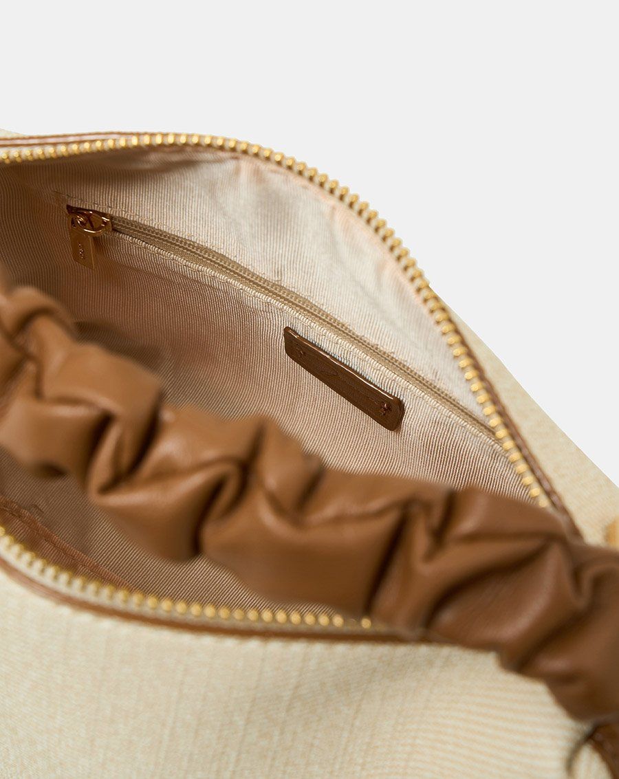 Sự phối hợp độc đáo giữa chất liệu canvas ở thân túi và da PU phần viền và tay cầm