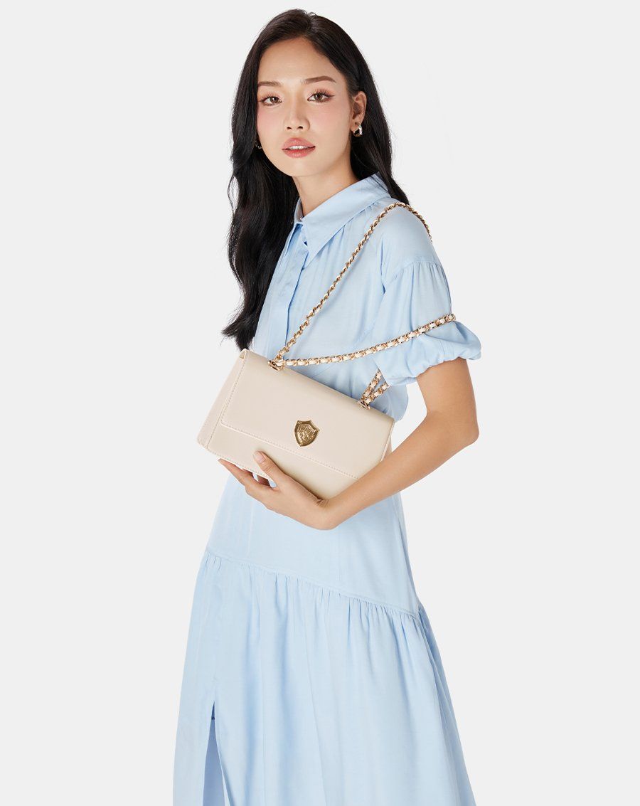 Túi xách nhỏ phối khoá logo Jn kim loại cách điệu lạ mắt
