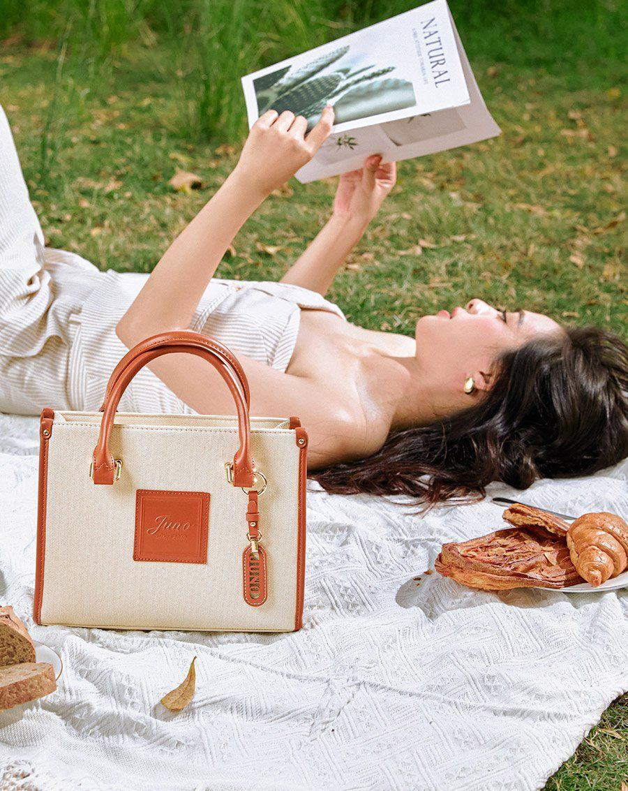 Túi xách trung tote camping kèm charm khắc laser logo Juno