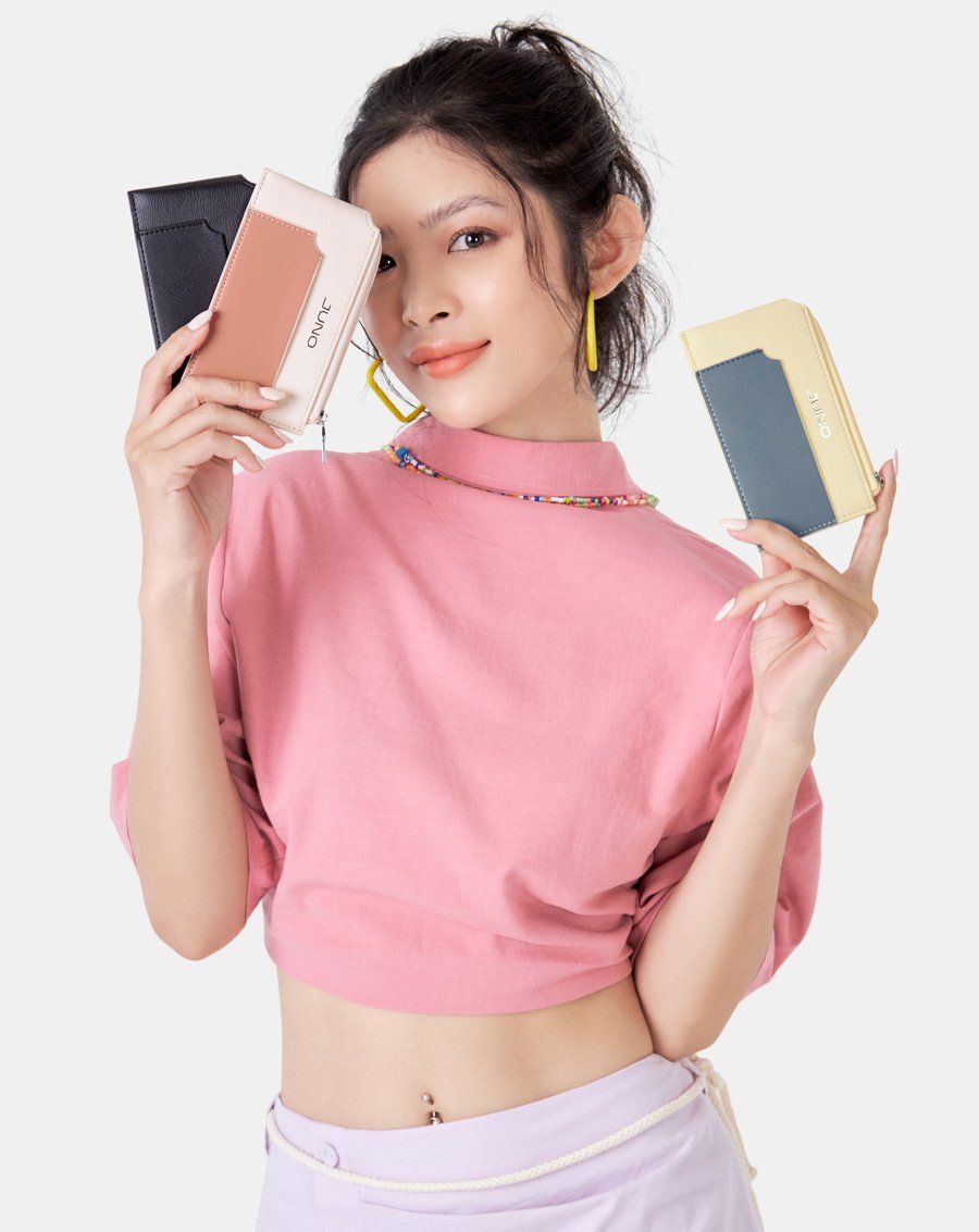 Ví đựng thẻ khóa kéo mới lạ, phối màu bắt mắt